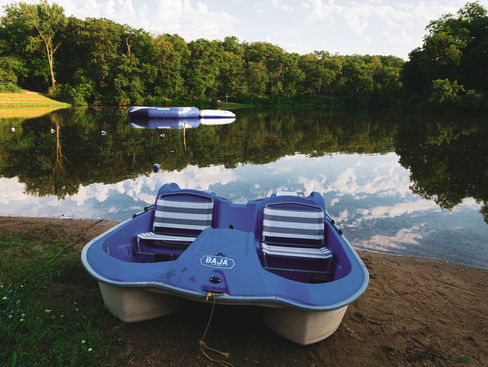 The camp supports a seven-acre lake stocked with bass, bluegill, and catfish. The lake is suitable for fishing and we currently have 9 canoes and 3 kayaks. We currently have a water trampoline and hope to get some paddleboats. A shelter house, picnic tables, and fire pit are also located in the beach area with a volleyball court and archery field located nearby.